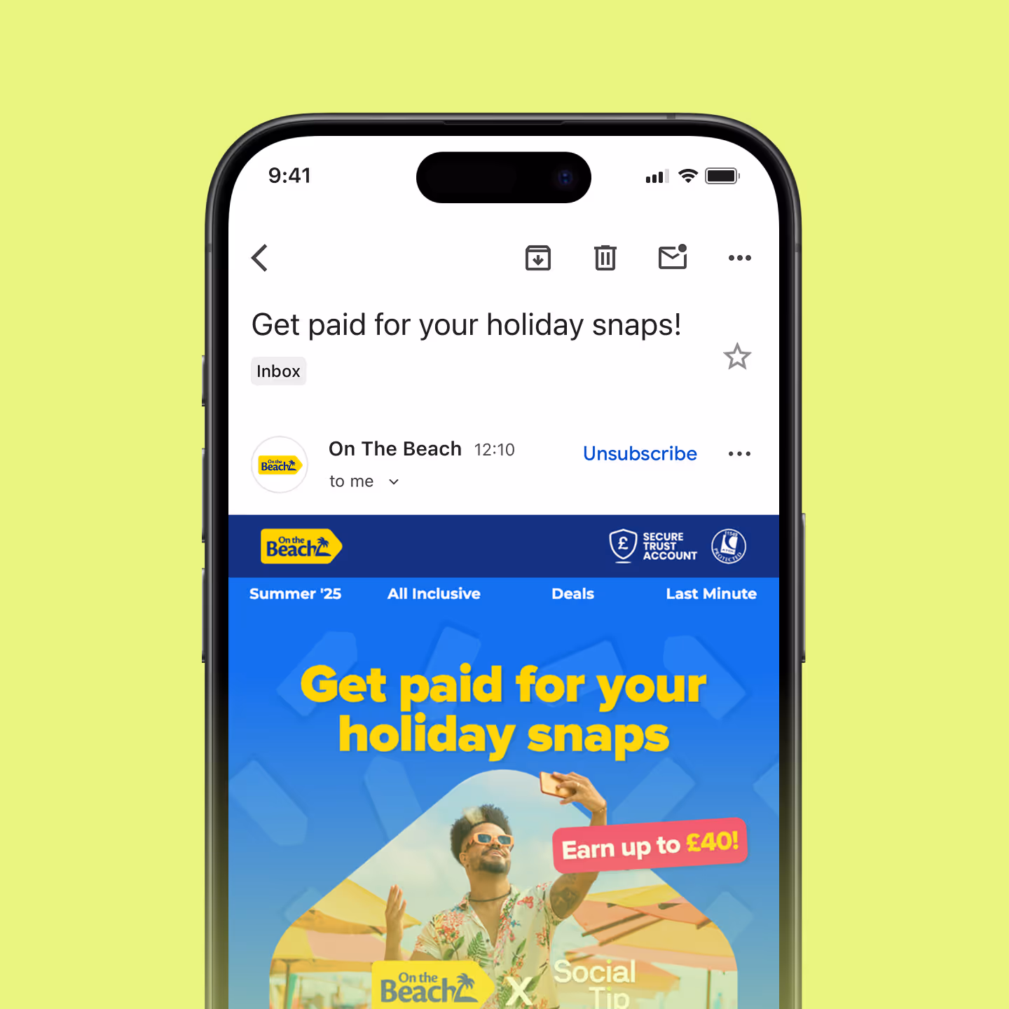 On the Beach partnered with Social Tip to harness the excitement and emotion that surrounds unforgettable getaways. As a sunshine-loving, experience-driven travel company, they know nothing is more powerful than real stories shared by real travellers. From spontaneous weekend escapes to dreamy long-haul adventures, Social Tip has helped generate vibrant, authentic content that brings On the Beach’s promise of easy, affordable holidays to life. Their community isn’t just booking trips - they’re spreading sunshine, one getaway at a time.
