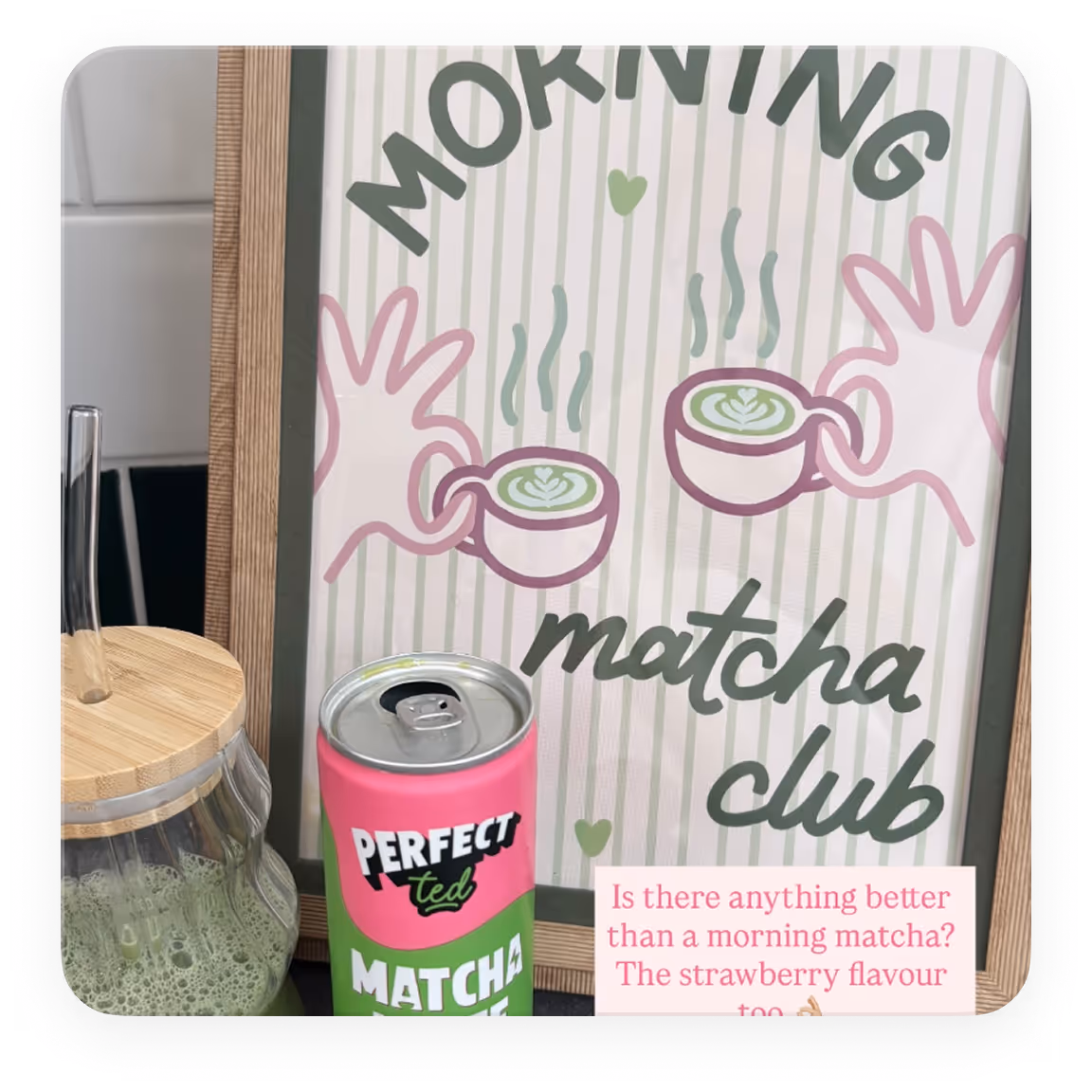 PerfectTed joined Social Tip to turn their abundant brand-love into a competitive advantage. As a social-first consumer brand, this master matcha maker knows that nothing is as authentic as positive posts shared by their customers. Incentivising their community to do the story-telling for them, using Social Tip has generated high-quality, high-credibility content reaching tens of thousands of potential new PerfectTed customers. From morning matcha rituals to taste-testing ready-to-drink flavours, their brand fans are channeling big PerfectTed energy.